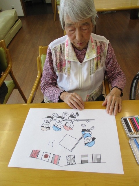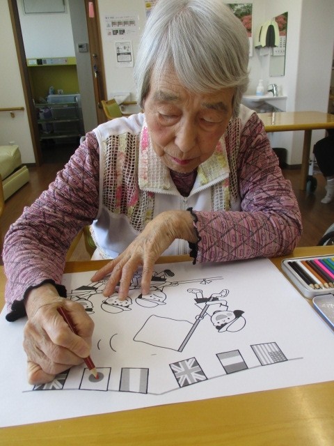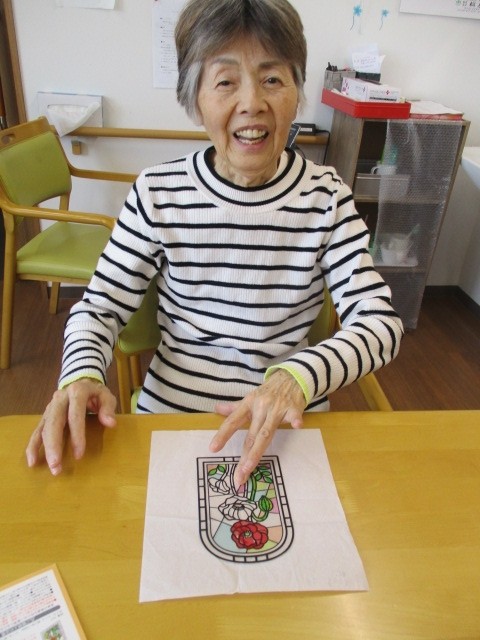 塗り絵や貼り絵を行っています( ^ω^)・・・ 綺麗に出来上がりましたね!! ニコニコされて嬉しそうです(^0_0^)