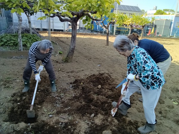 収穫後は土を耕して肥料を混ぜて次の植える準備も手伝ってもらいました。