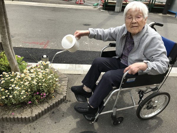 お花が大好きな皆さんが多いので、ホームの周りのお花も枯らさないように水やりをしていま~す!
