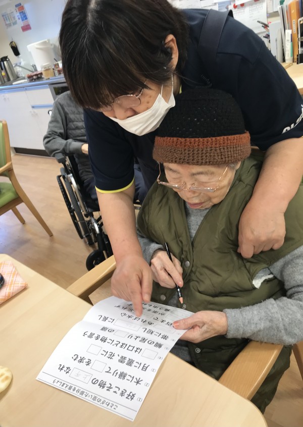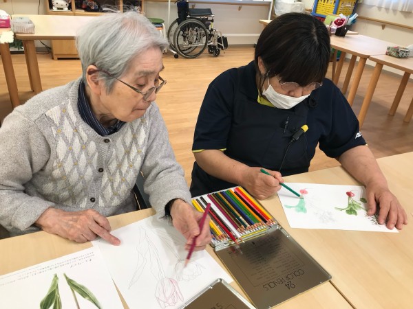 スタッフとぬり絵をしたり、ことわざの穴埋め問題を解いたりされています♪