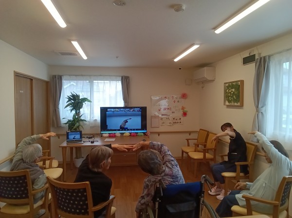 今回は、健康増進サービス課の運動トレーナーとリモートを繋ぎ、運動教室を行った際のご様子をご紹介いたします。
