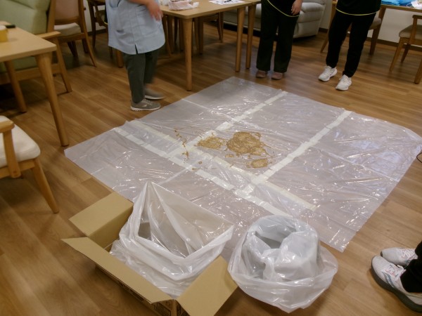 嘔吐物の処理を誤ってしまうとそこから感染症の拡大が発生しますので私含めて全職員がきちんと対応できるように勉強していきます。