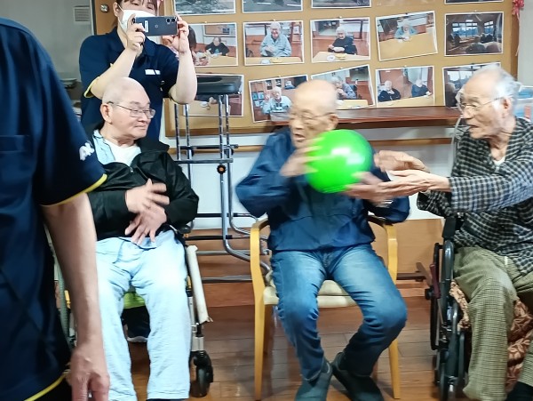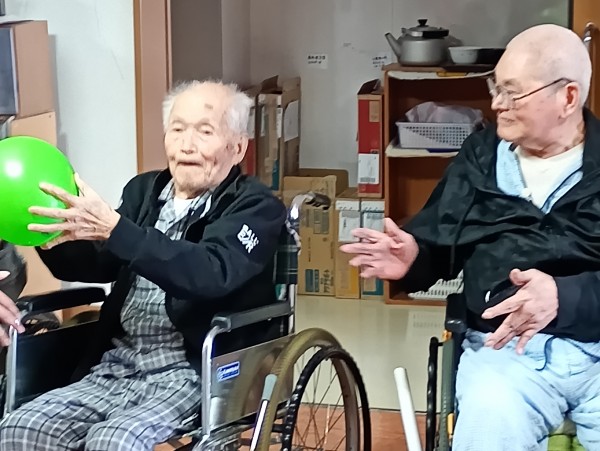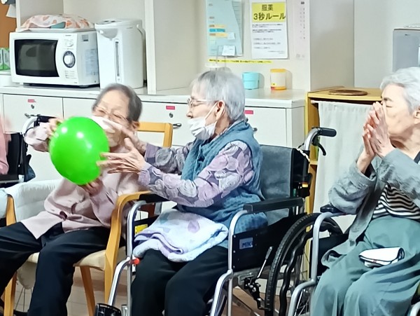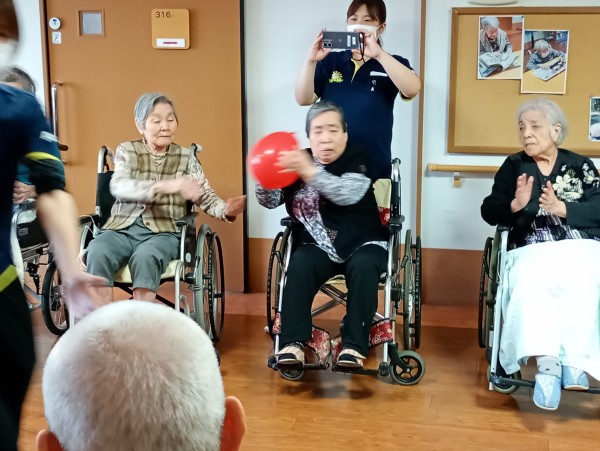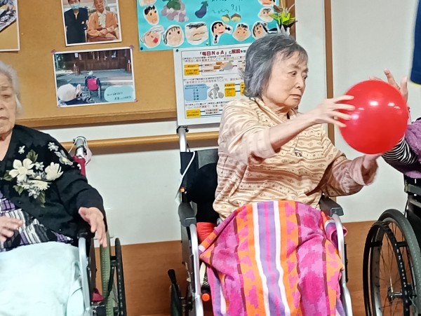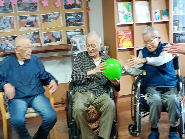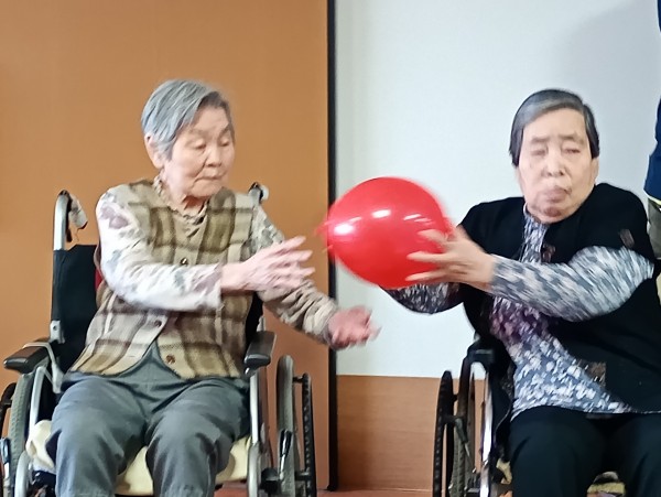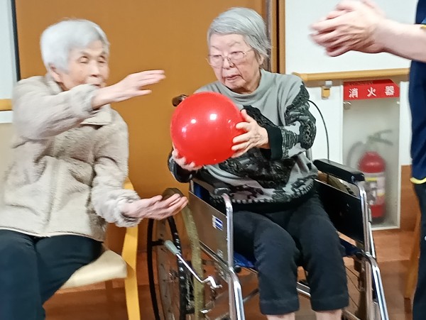 2チームに分かれ隣の席の方に風船を渡していきます。