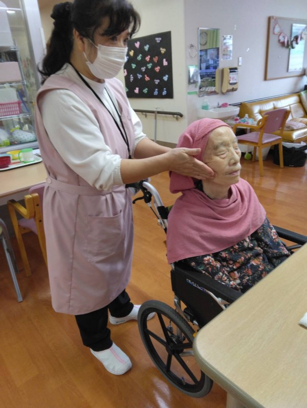 お顔や足などをマッサージされて皆さま気持ちよさそうでした。