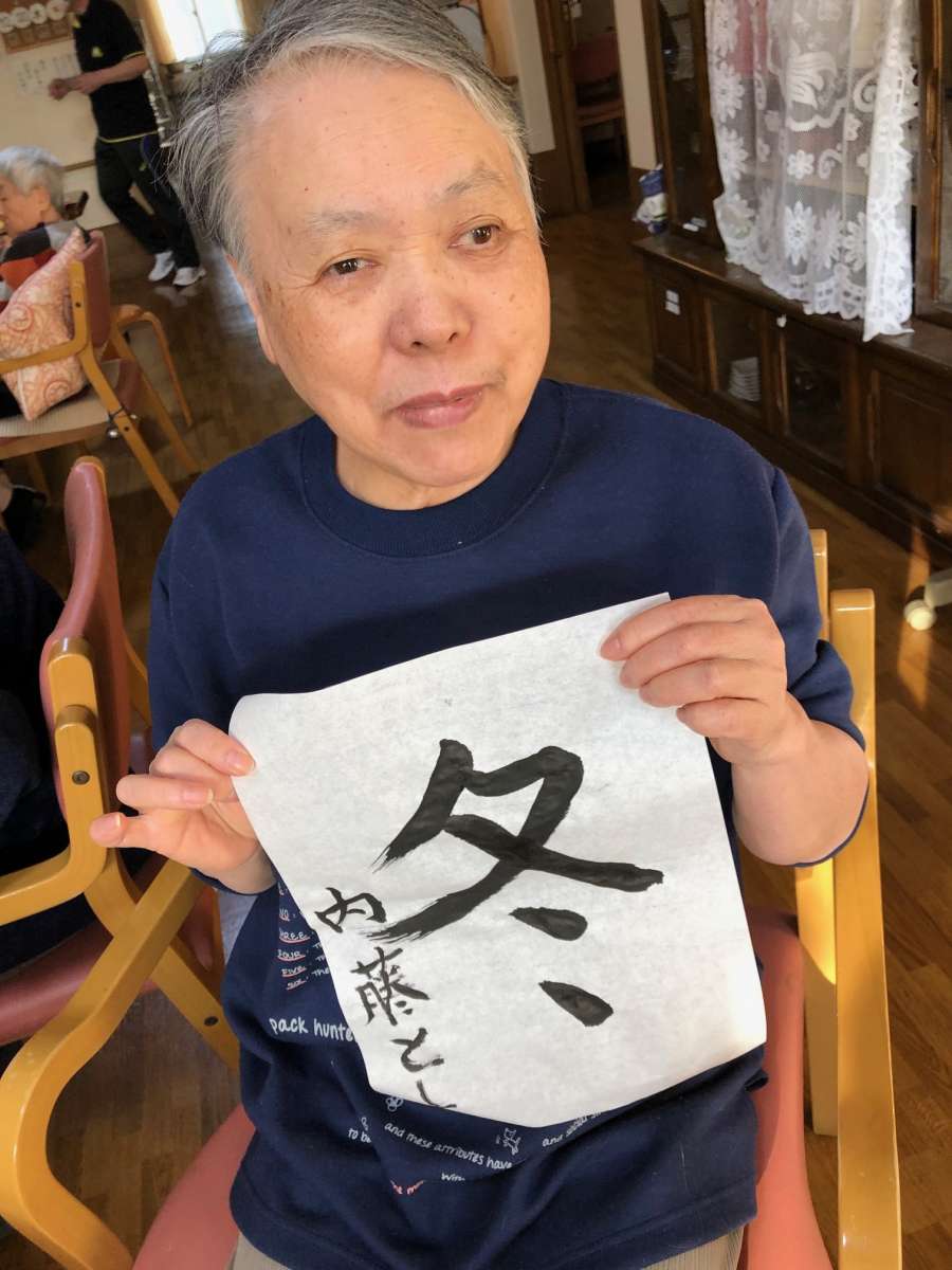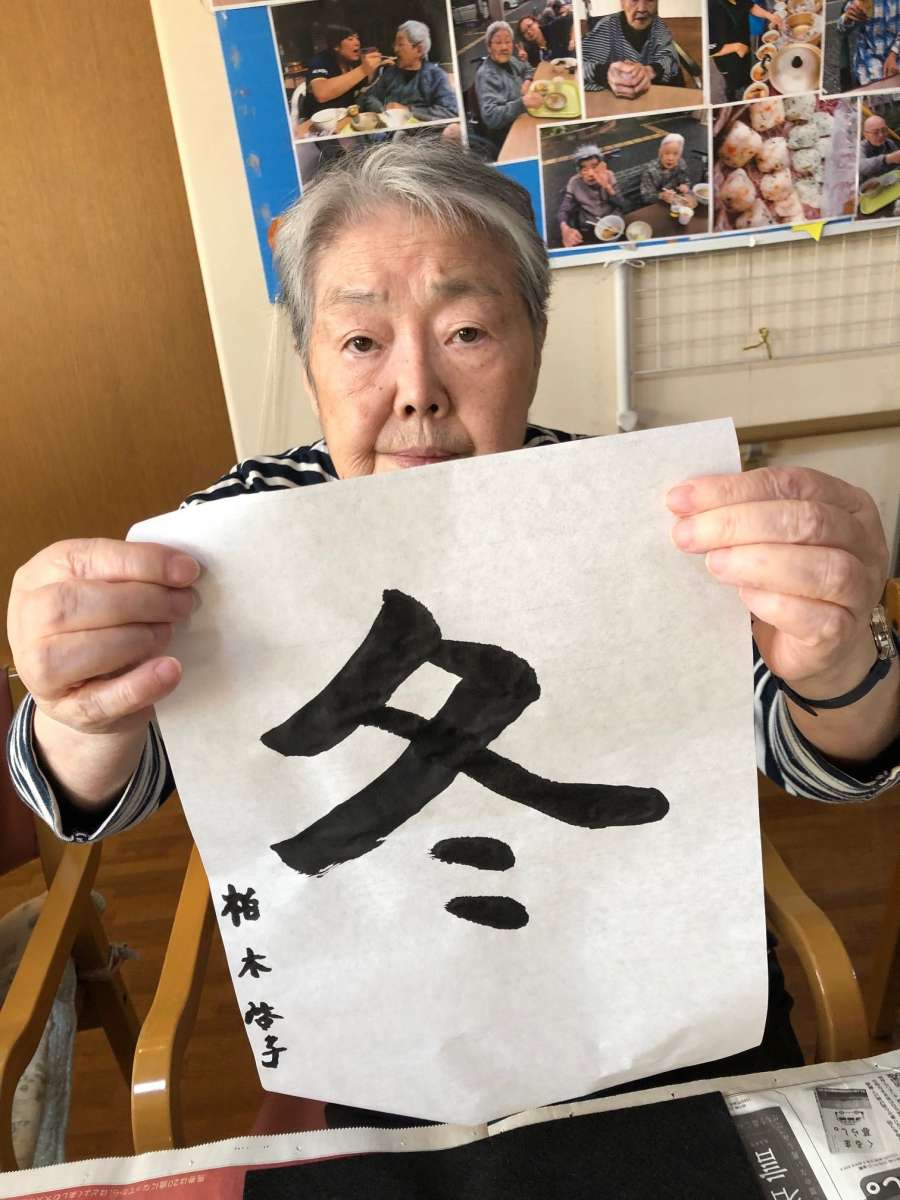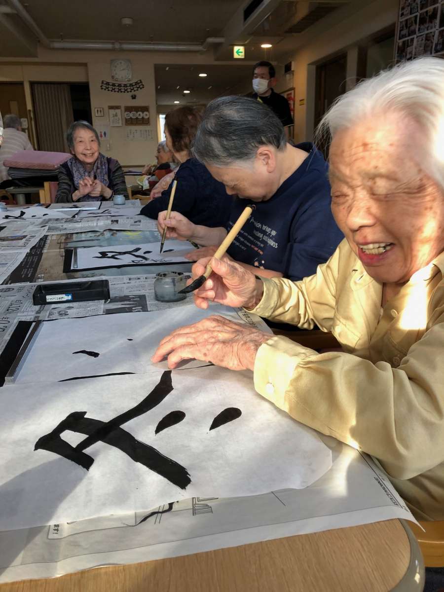 「久しぶりに筆を持つから手が震えちゃうなぁ」と緊張の面持ち。