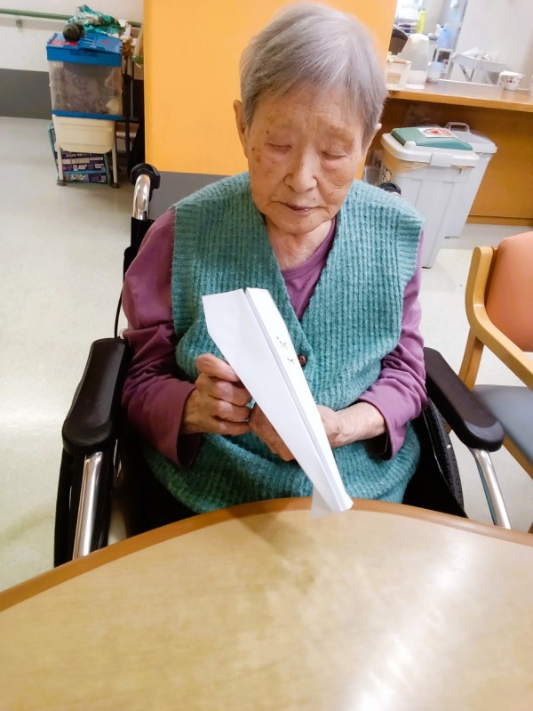レクの前半は紙ヒコーキ!!!自分で作った紙ヒコーキでどこまで飛ばせるか・・・