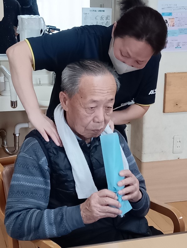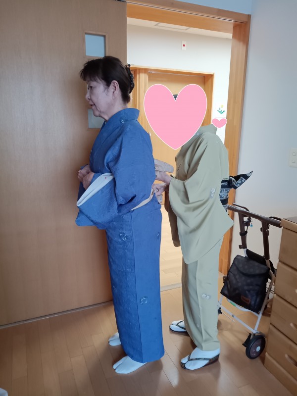 普段からご自身で着付けをされ、着物をお召しになられているご利用者様に今日は特別に帯を締めて頂きました♥