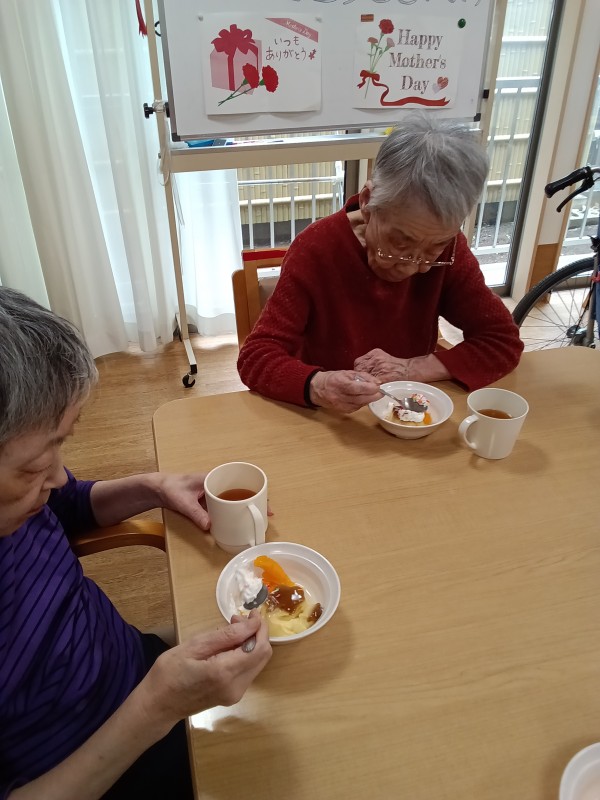 ホームのお母さん(女性ご利用者様たち)に感謝の意を述べると共に、プチ贅沢なおやつ会を行いました!