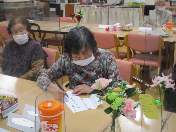 ご利用者の皆様には、季節の風物詩や日々の暮らしをテーマに、五・七・五のリズムに思いを込めて一句読んでいただきました。今月のテーマは五月を連想するもの。「新緑」「こどもの日」「母の日」など。季節を感じるワードを自由に使って、皆様それぞれの感性で表現していただきました。