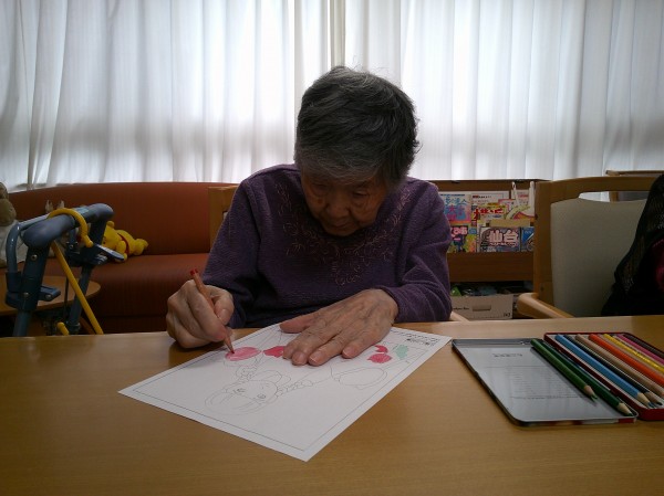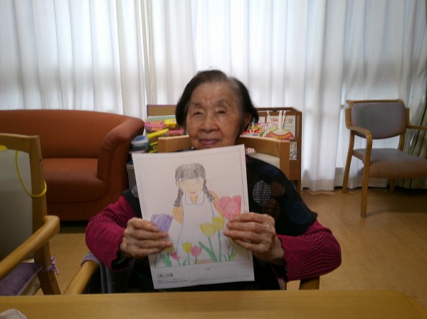 先日のレクリエーションで塗り絵をされていた方の作品が完成しましたのでご紹介させていただきます♪