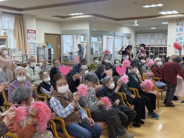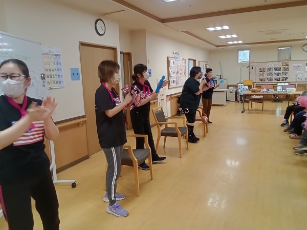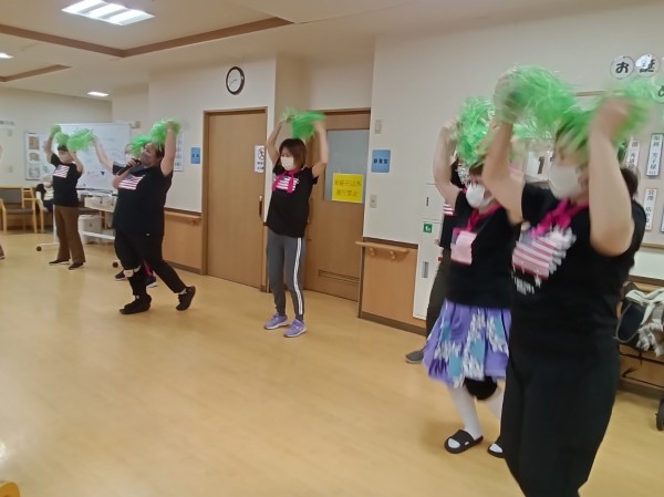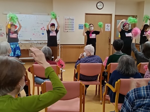 ご利用者様もポンポンを持ち、一緒に踊ってくれました♪