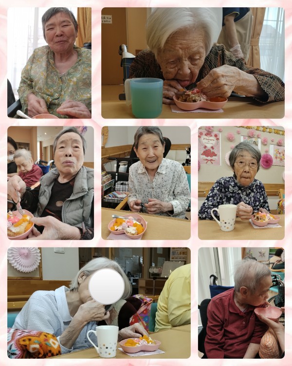 いちごイチゴ風味のクリームとフルーツのクリームをトッピングしました(*´༥`*)