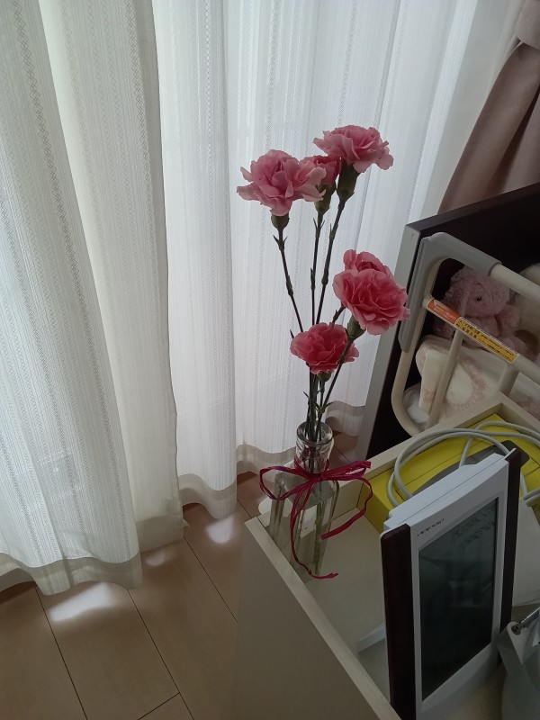 カーネーションはお部屋に飾られました^^ピンクの可愛いカーネーションに癒されてください(✿◠‿◠)