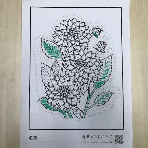 本日は利用者様が塗られた“塗り絵”を紹介します(#^.^#)