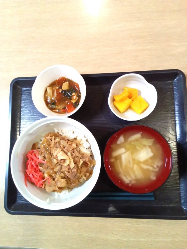 ・北海道名物 豚丼 ・白菜のお味噌汁 ・豆腐干の中華あんかけ
