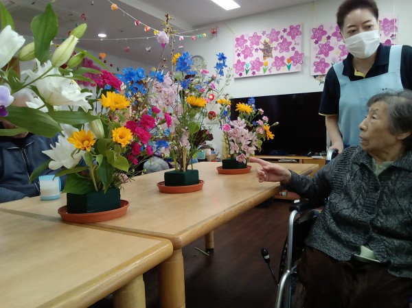 出来上がったお花を並べて品評会☆☆
