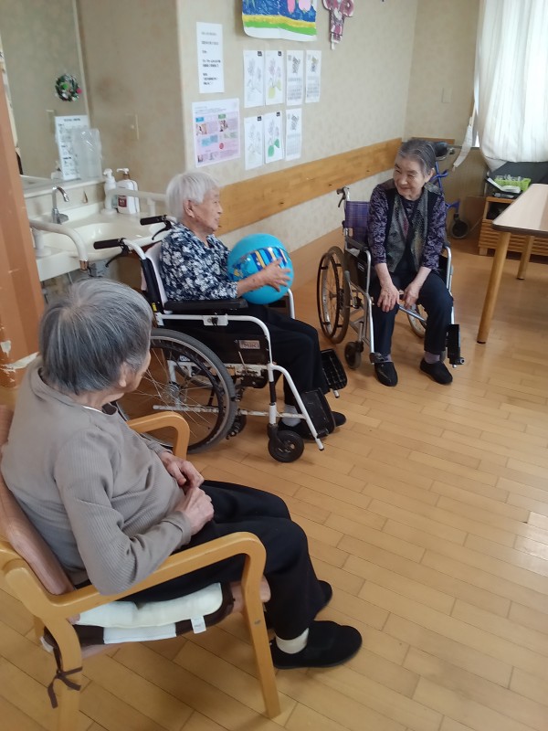 天気も良く暖かいので皆さんで輪になってボール投げをしました\(^o^)/