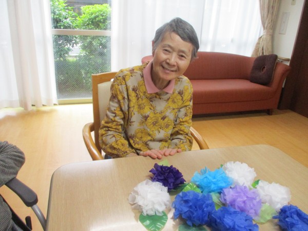 今日はお花紙でアジサイを作ってみましたので、そのご様子になります。
