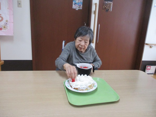 皆さまにイチゴのトッピングをしていただき、バースデーケーキが完成しました♪