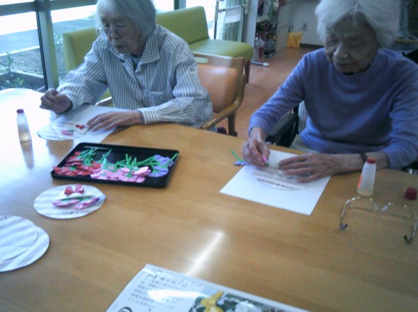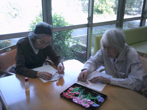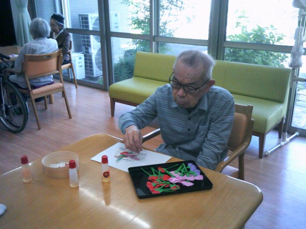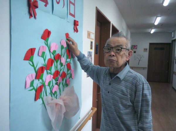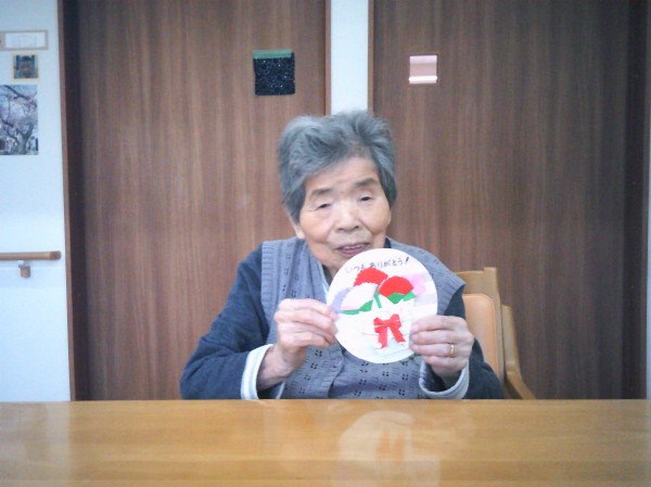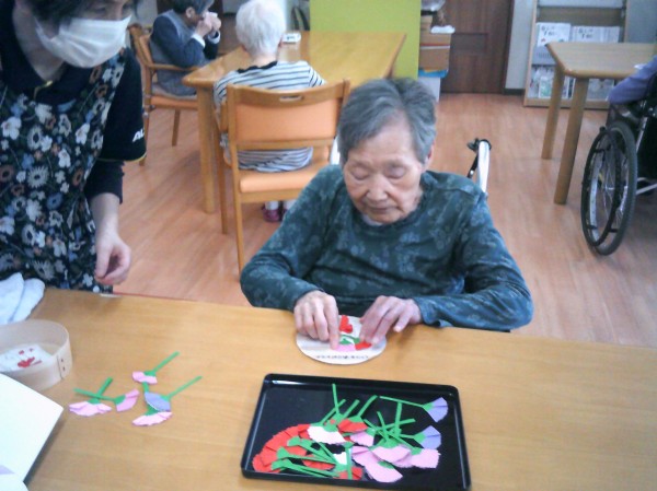 丸い用紙にカーネーションの花を貼っているご様子です( ^ω^)・・・ 楽しまれていました(*^_^*)