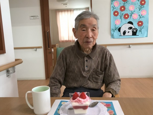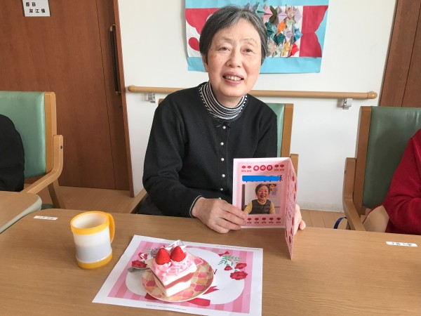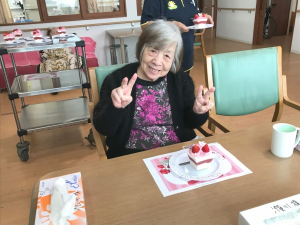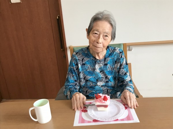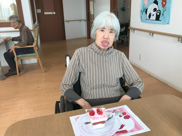 昼食を終え、おやつは特別なケーキをご用意しました!!