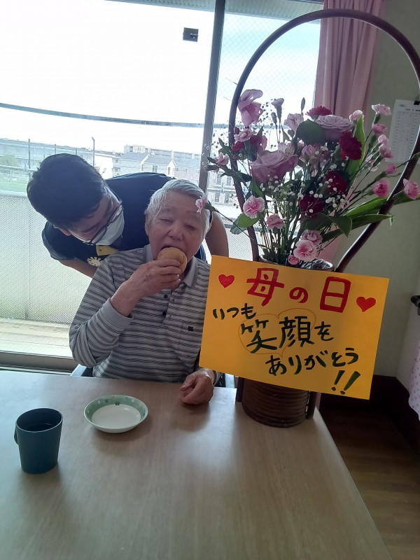 母の日ということで、お花とシュークリームと一緒に記念撮影をしました♪