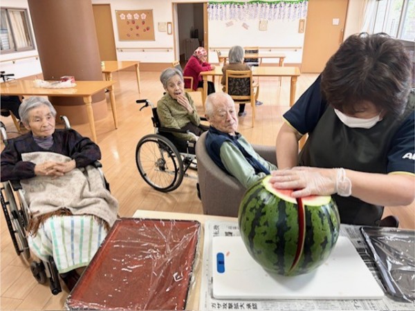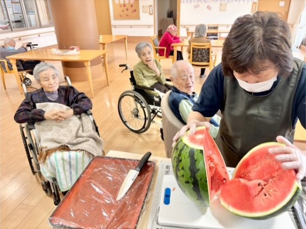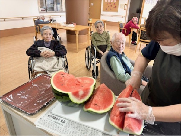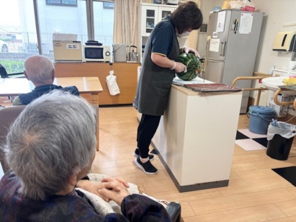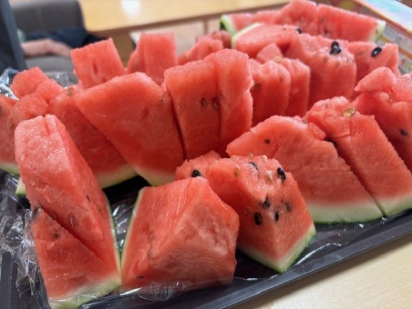 ご家族様が大きなスイカを2つも差し入れしていただき、みんなでご馳走になりました!