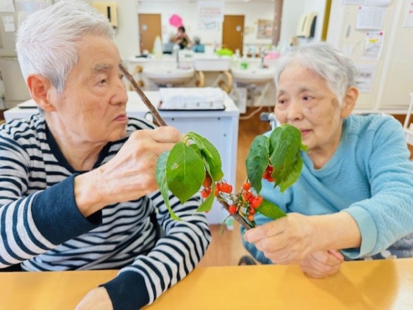 職員の家でさくらんぼがたくさん実をつけたので施設に持ってきてくれました