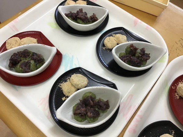 あんこときなこを添えてお出しして皆さんに召し上がって頂きました。