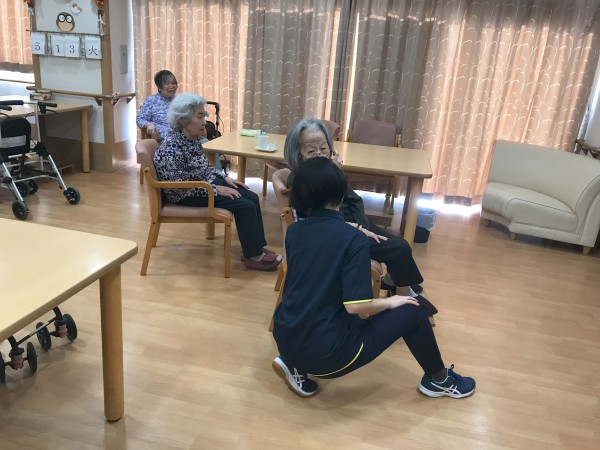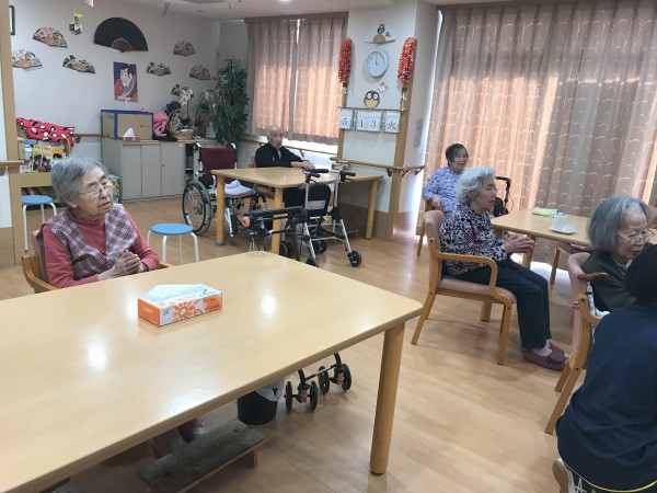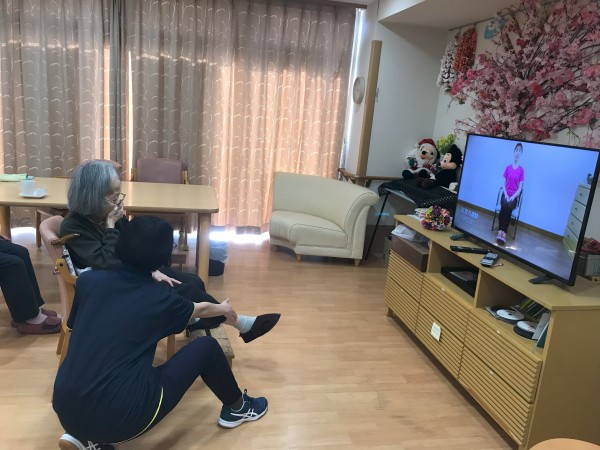 この日は「ノーアエクササイズ」の動画を再生し、入居者の皆様に体操を促しました!