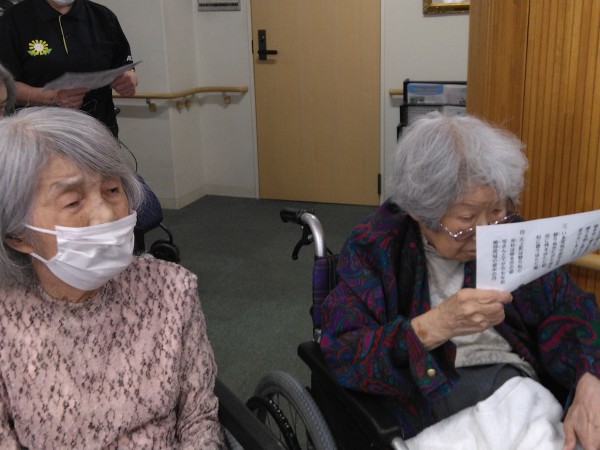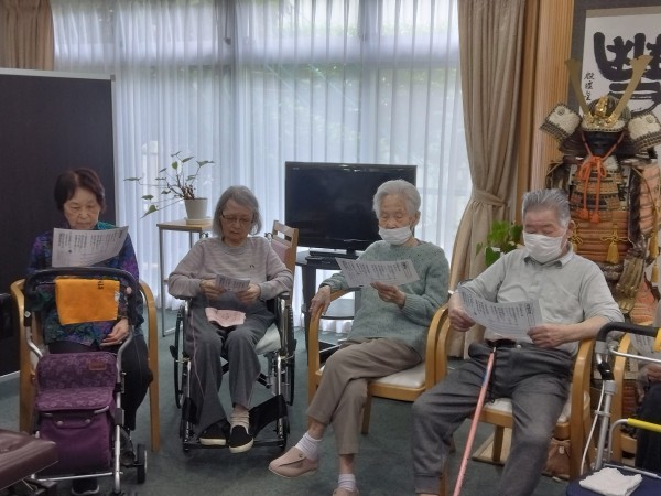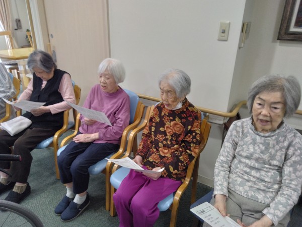 音楽療法は、ピアノに合わせてお客様にお歌を歌って頂く、人気のレクリエーションです♪