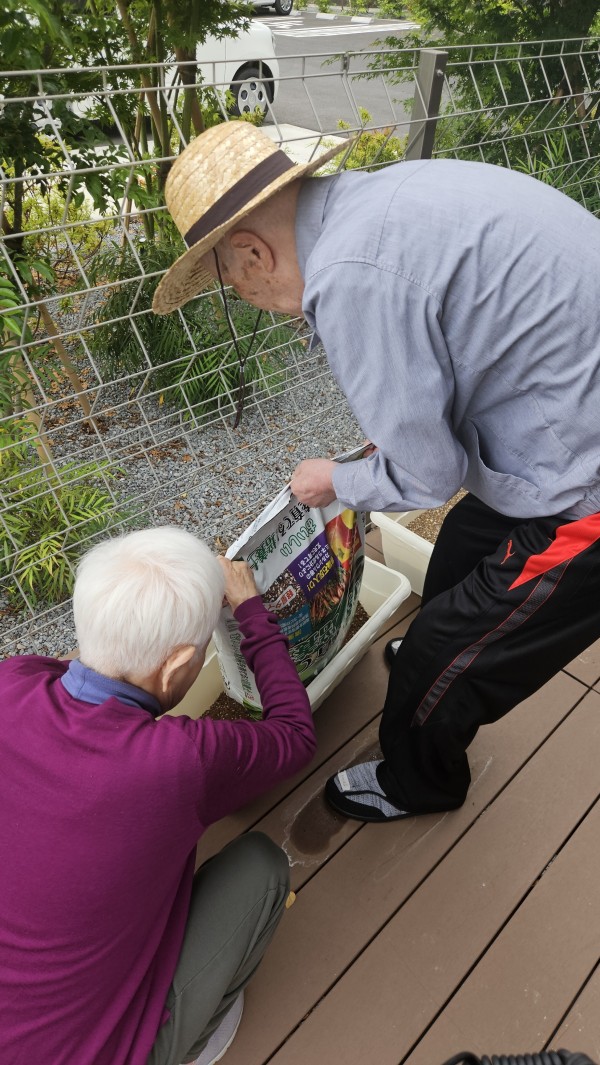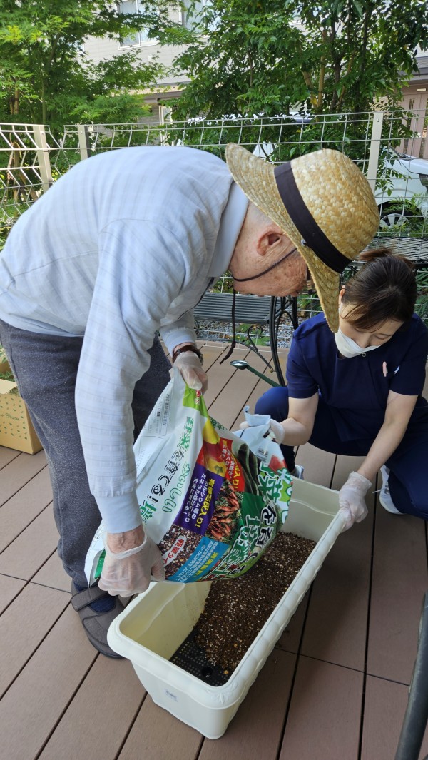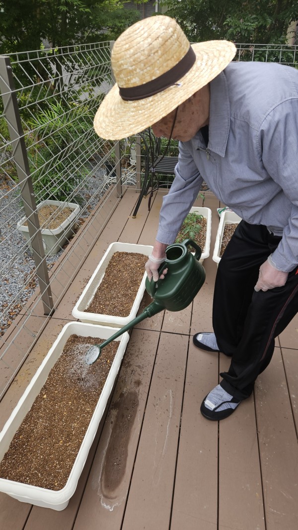 当施設のテラスでお野菜を育て始めました(*^-^*)!!