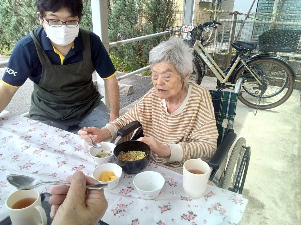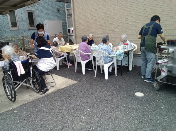 1階フロアのご利用者様が昼食を外で召し上がりました。