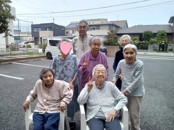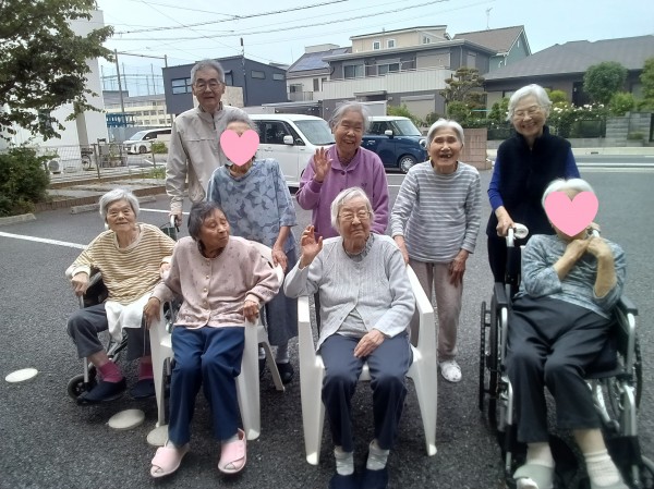 2階ご利用者様に続き、1階の皆様にも昼食を外で召し上がっていただきました。