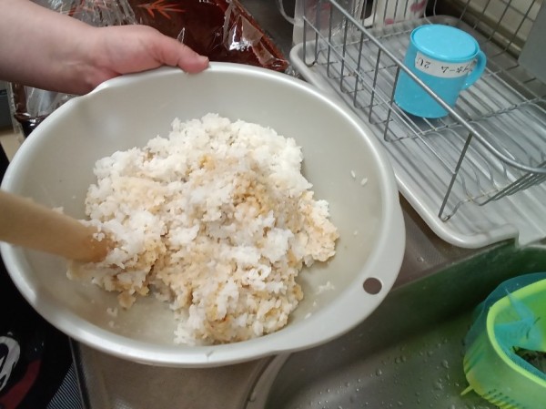 職員さんの手作りみそを塗っていただきました!