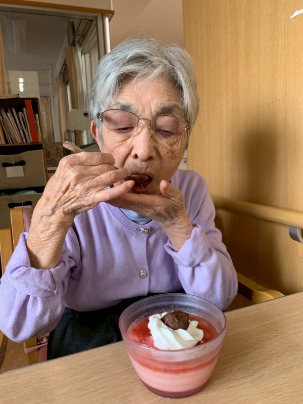 ホーム長自ら持ってきてくださり、そのおやつをみて目を輝かせてくださいました♪