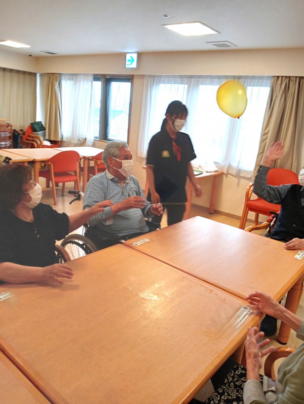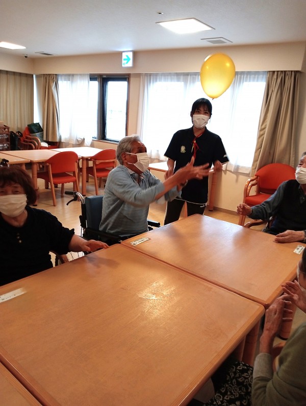 今日は3階の皆さんは風船バレーをして盛り上がりました!