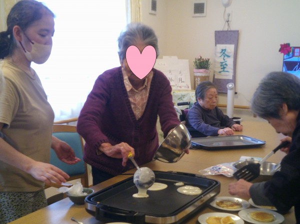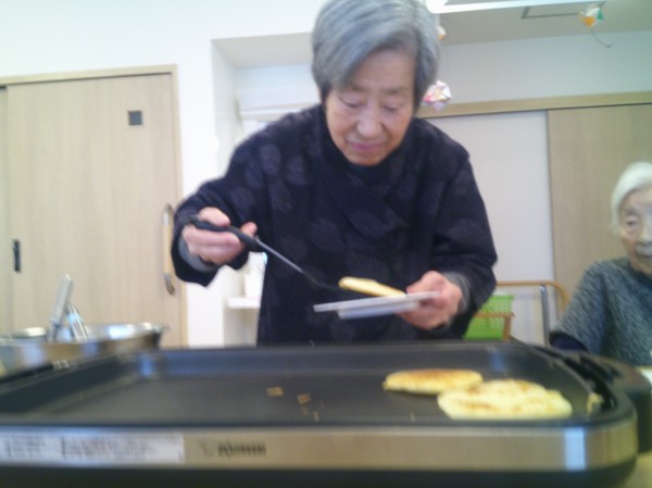 今日はおやつレク真剣に作る姿をご覧ください。