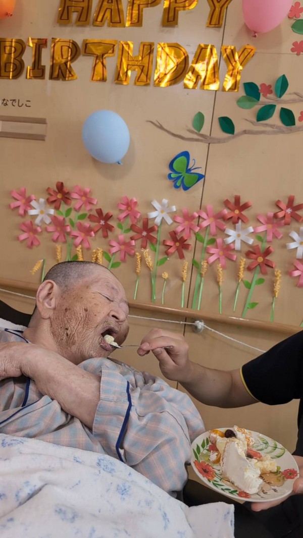 「Hさん、フロアで皆んなと一緒にケーキ食べて楽しかったですか?」