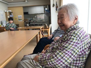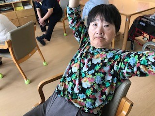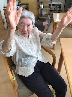 今日はリモートの運動教室です。テーブルや椅子は動かさずに、普段通りの居場所でみんなで身体を動かします。だから笑顔も普段通り、極ごく自然にほころびます。