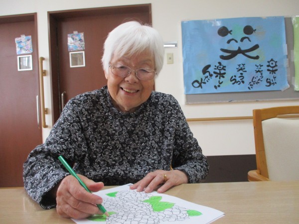 「ここはどんな色が良いかな?」「あなたの塗り絵はいつもステキね♪」と会話も弾んでいます☆彡