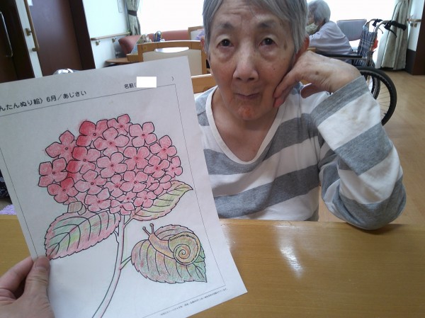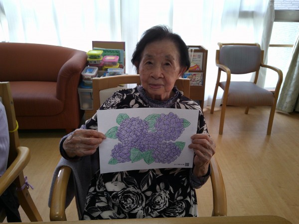 今回は日中に行った塗り絵レクのご様子と、完成した作品のご紹介です♪