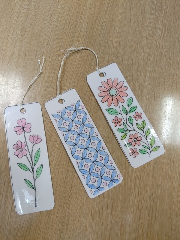 ご自由に色を塗っていただき、おしゃれなしおりが完成しました。