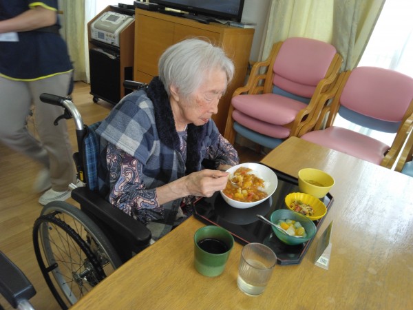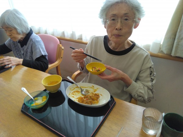 本日のお昼のメニューは「チキンカレー」です( ^)o(^ )
