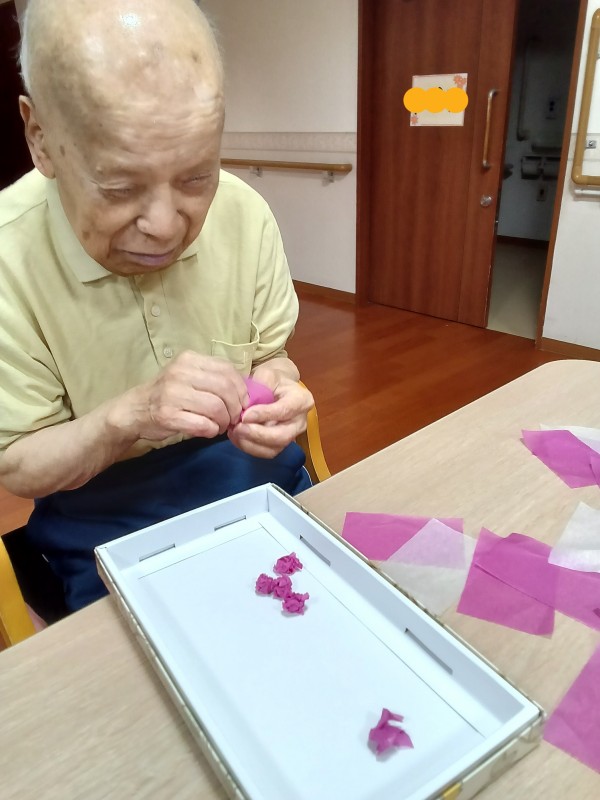 材料を準備し、利用者様にお願いすると、「何ができるの?」などと興味深々の方もいらっしゃり、着々と進行しています。