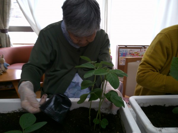 「昔育ててたことあるわ」「こりゃいいきゅうりができるよ」などお話しながら植えました!