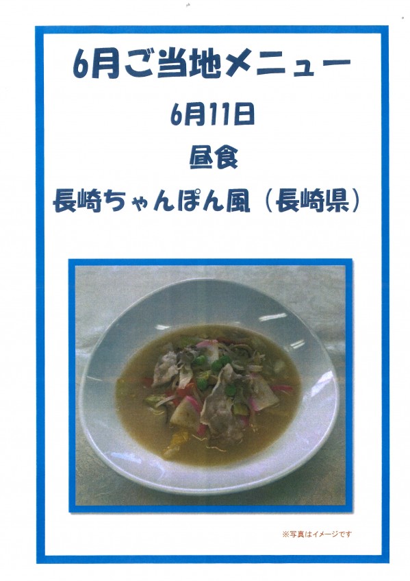 6月のご当地メニューは長崎ちゃんぽん