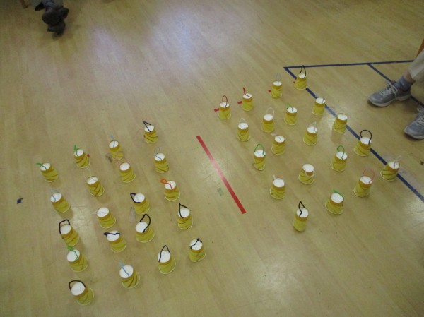 筍狩りといっても筍に見立てたカップにモールで引っ掛かりをつけ、特製の棒を通してすくうゲームです!