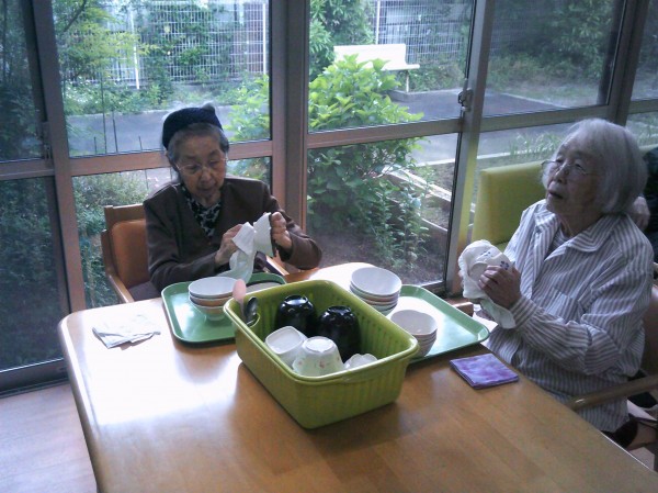 2名でお手伝い(食器拭き)を行っています( ^ω^)・・・ お喋りされながら楽しまれていました(*^_^*)