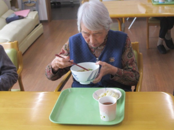 今日は昼食におうどん・おにぎり????・サラダを召し上がられているご様子です( ^ω^)・・・
